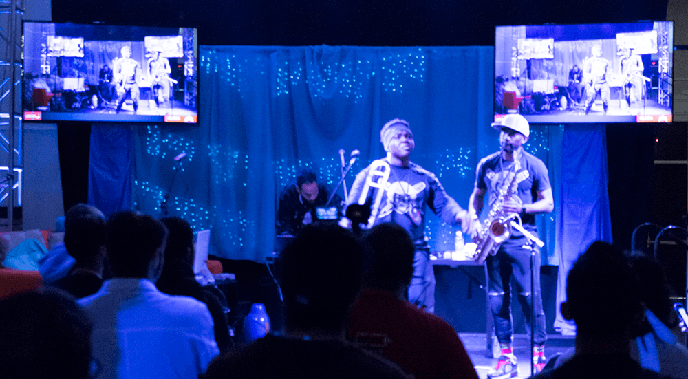 Another group that drew a large crowd was Bit Brigade. One man, Noah McCarthy, does NES speed runs while the band does live versions of the game’s theme music. The speed run is amazing, as is the music. I’ve really never seen anything quite like it.