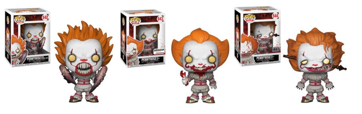 As mentioned, we also get three very awesome and creepy versions of Pennywise. Pennywise with spider legs, Pennywise with Georgie’s severed arm (which will be exclusive to Amazon), and Pennywise with a fire poker in his head (exclusive to FYE stores).