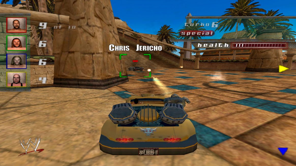 THQ may not have found success by taking wrestlers outside of the ring with WWF Betrayal, but they went for the same strategy two years later for WWE Crush Hour. This time, instead of a beat ’em up, THQ took inspiration from Twisted Metal to put the wrestlers into a car combat game. If you think that sounds crazy already, you’re absolutely right.