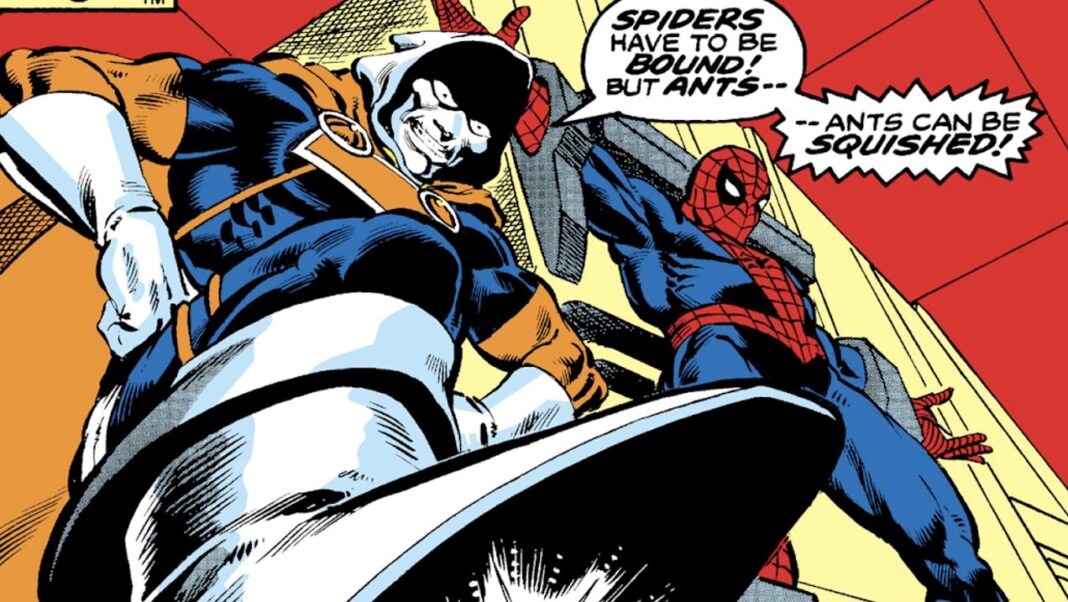 First appearing in The Amazing Spider-Man #15, Kraven, a Russian big game hunter, is often overshadowed by more popular Spidey villains like Green Goblin and Venom. His signature costume is audacious; he’s normally drawn in leopard print and furs, but he can hold his own as a worthy opponent to the web-slinger.