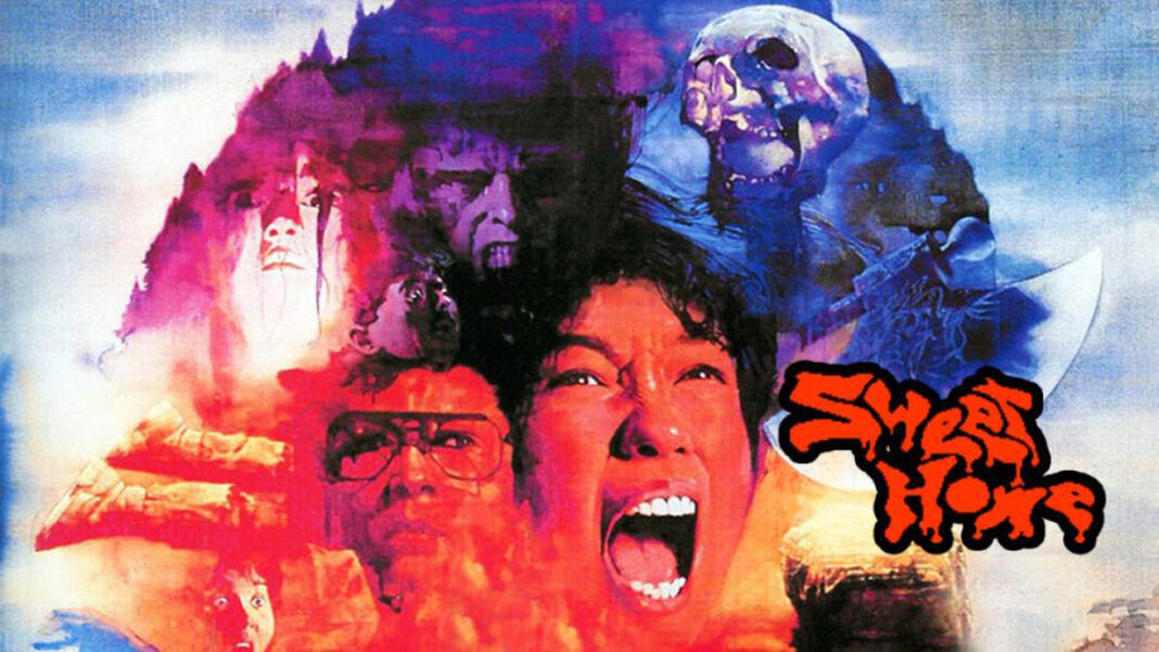 Sweet Home is a 1989 Japanese horror flick written and directed by Kiyoshi Kurosawa and distributed by Toho. The movie follows a small film crew that visits an old, abandoned, and decrepit mansion in hopes of restoring the art of the mansion’s previous owner, Ichirō Mamiya, in order to film a documentary. After arriving at the mansion, the group encounters hauntings by the ghost of the late artist’s wife. While she was alive, her child crawled into an open furnace, and after her death, she haunts and murders anyone who comes to the mansion out of anger at her negligence.