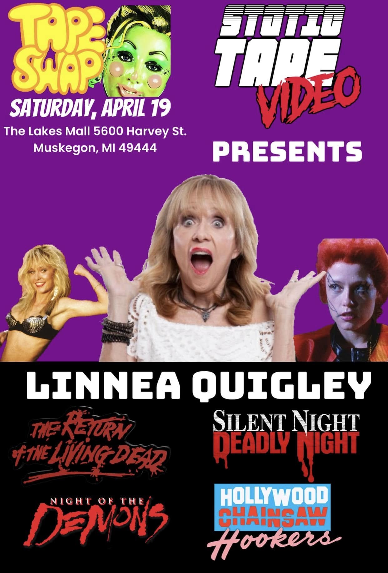 Then, on Saturday, April 19, Static Tape Video is doing its annual Tape Swap, featuring a ton of vendors selling tapes, DVDs, Blu-rays, posters, collectibles, and so much more. There will also be special in-store sales you won’t want to miss. If that wasn’t enough, there will be live music and special guests like the legendary scream queen Linnea Quigley (Return of the Living Dead) and Marc Price (Trick or Treat). The Tape Swap will run from 10 a.m. to 6 p.m. with a special screening of the 1986 horror classic Trick or Treat inside the mall.